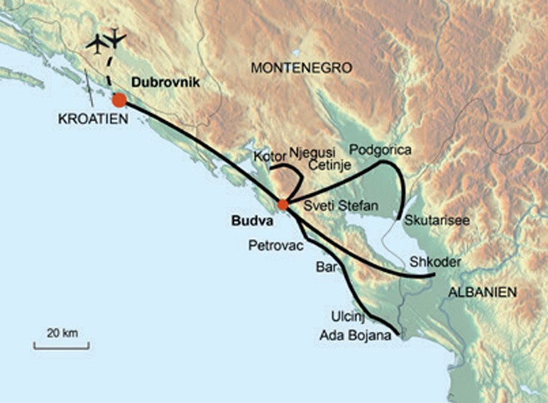 Sie starten heute mit einem Stadtspaziergang in Budva, das auf einer kleinen Halbinsel liegt und von den Venezianern als auch von den Habs burgern regiert wurde. Heute präsentiert sie sich in schö nem, neuem Glanz. Danach unternehmen Sie eine entspannte Bootsfahrt zur Insel Sveti Niko laus. Entspannt geht es weiter zu einem Stopp nahe der Insel Sveti Stefan: idyllisch gelegen im azurblauen Meer beherbergt die kleine Insel ein Luxushotel, bietet Ihnen jedoch ein tollen Motiv für ein außer gewöhnliches Foto. Danach Besuch des Klosters Reszevici, wo Mönche seit Jahrhunderten kalt gepresstes Olivenöl herstellen. Das ehemalige Fischer dorf Petrovac an einer schönen roten Sand bucht steht zum Abschluss auf dem Programm. Spazieren Sie an der mit Palmen und Pinien ge säumten Uferpromenade bevor es zurück zum Hotel bei Budva geht. (AI)